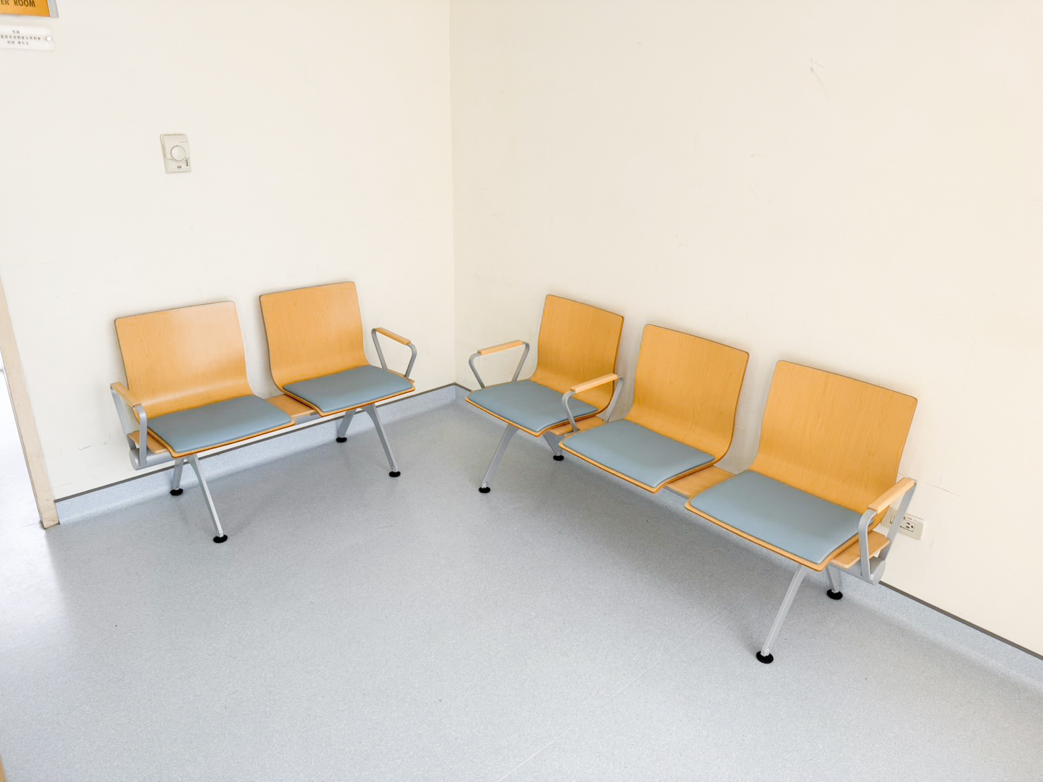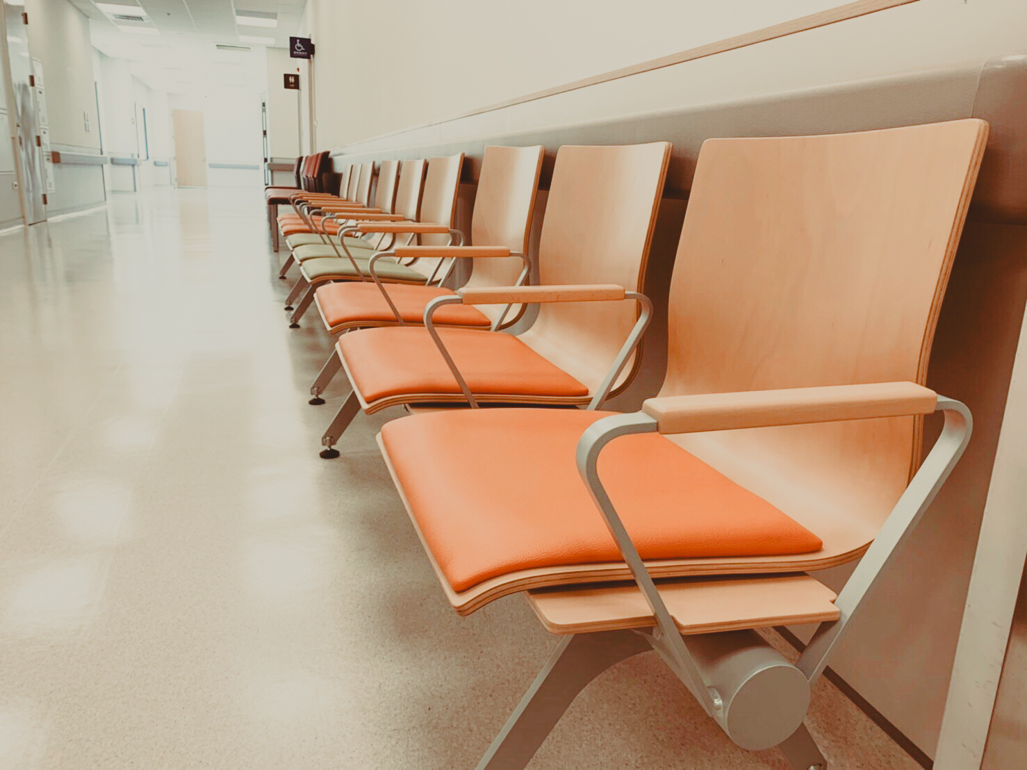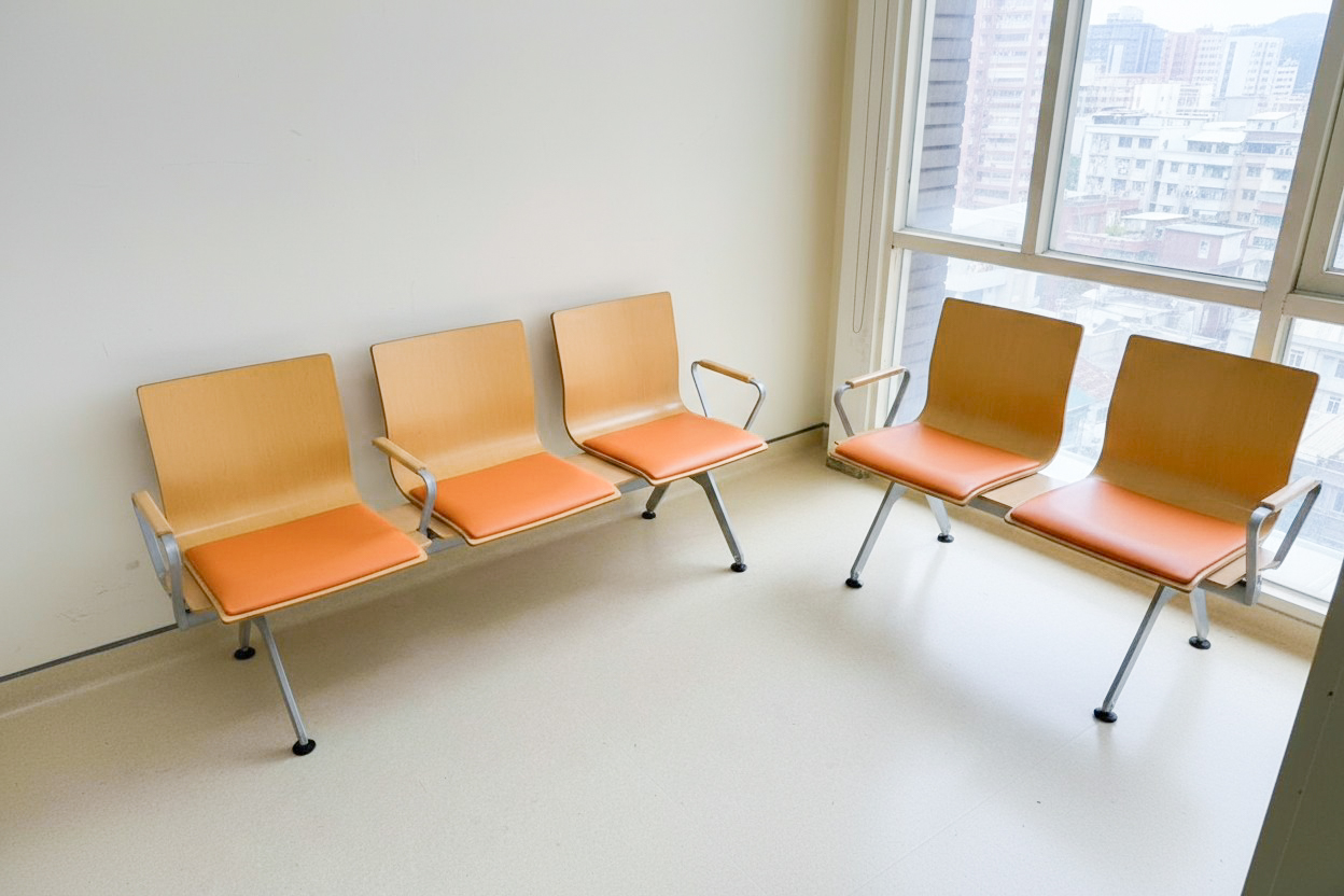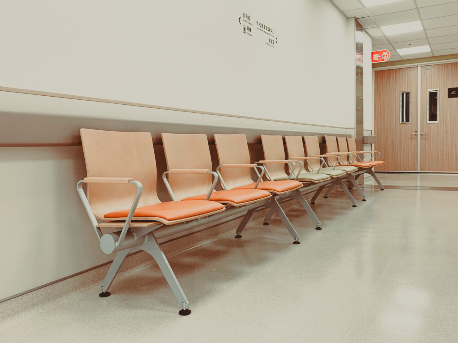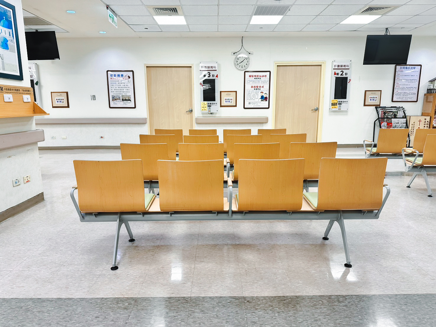 以自然木質椅背打破醫院冷冰冰的既定印象,營造柔和的視覺感。
